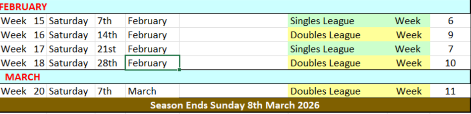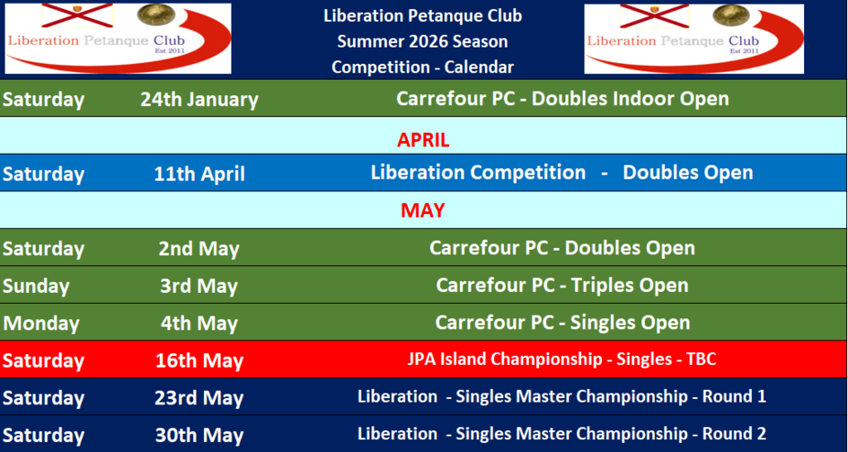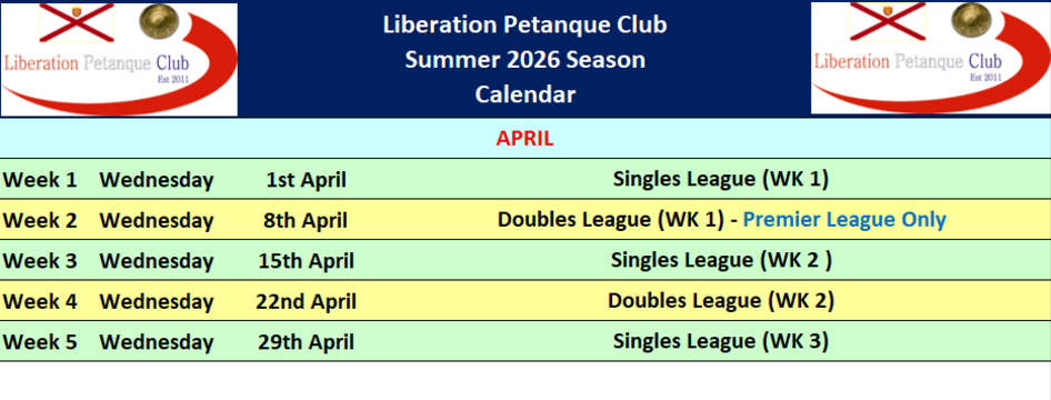 2026 Competition and 2026 Summer League Calendar below and 2025/26 Winter League Calendar below